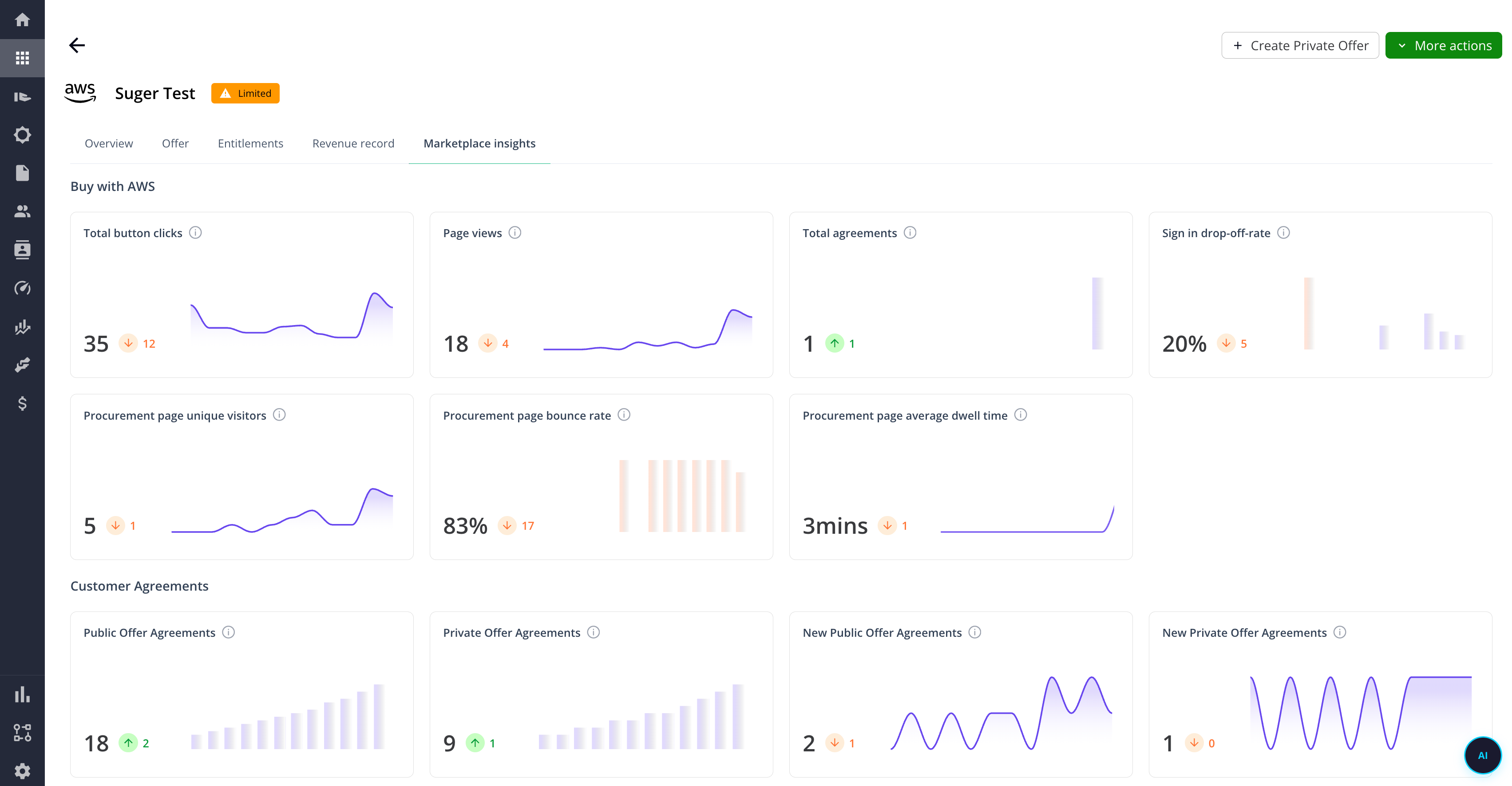 To unlock the Customer Agreements, Listing Performance, and Search Performance insights, you must enroll in the AWS Marketplace Seller Prime program.