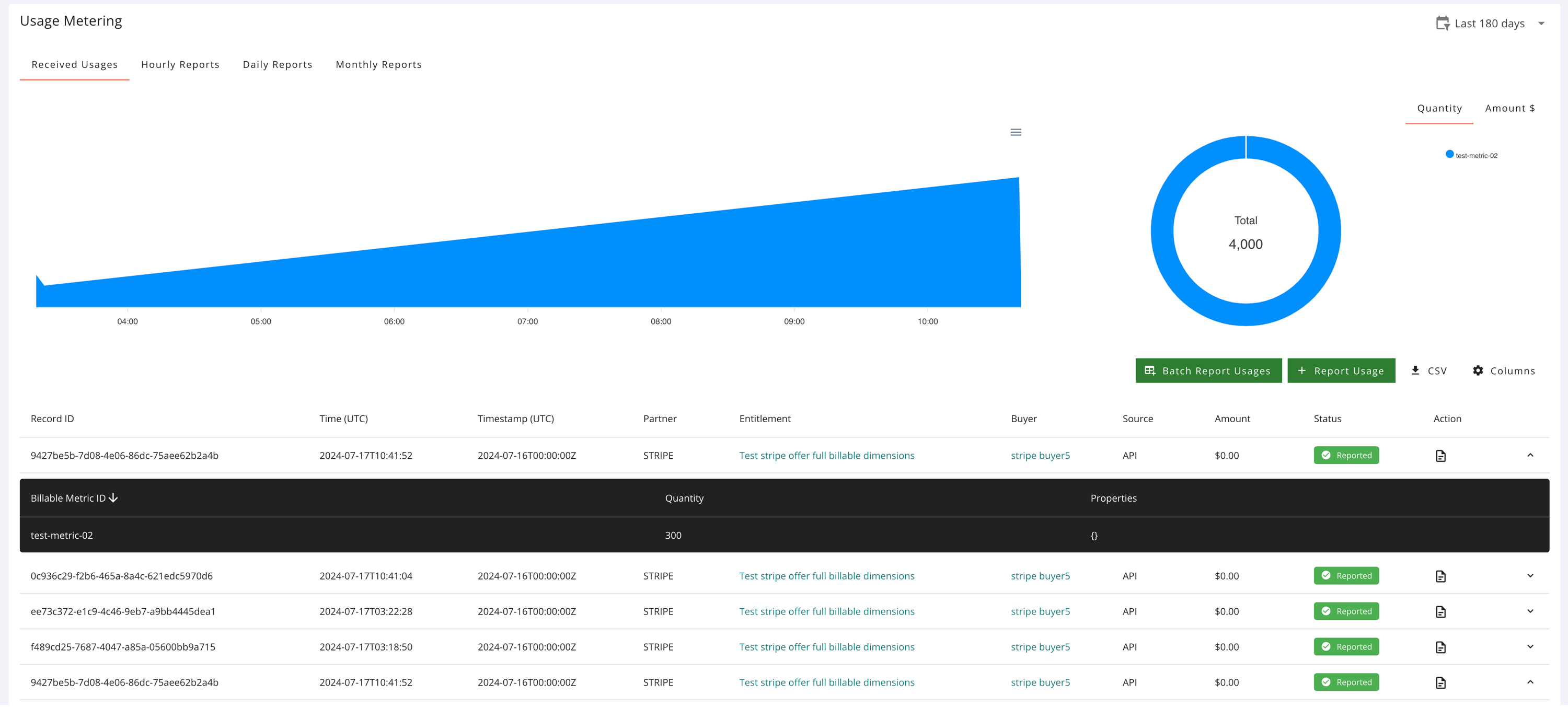 After the entitlement is created, you can report metric usage data to Suger in real time. Suger will aggregate the reported data by hourly and daily.