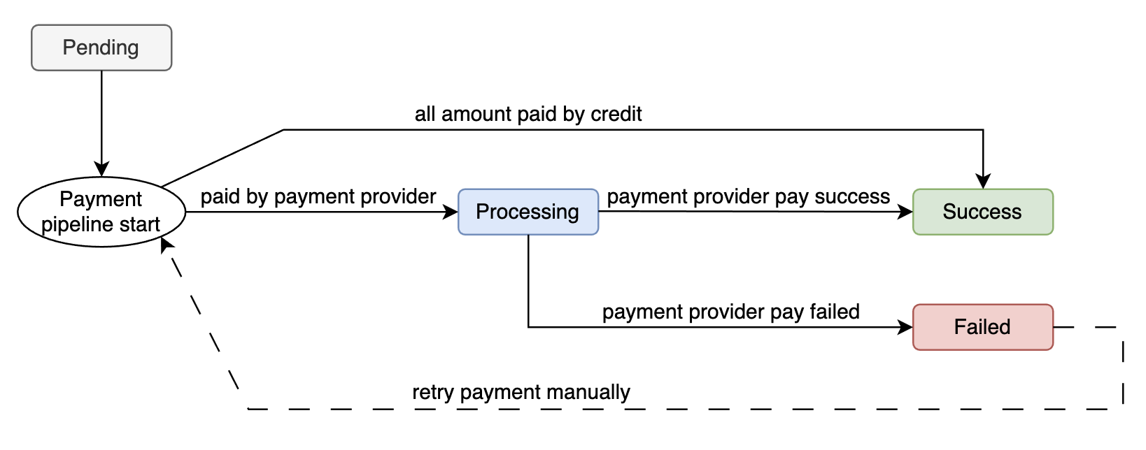 - If the entire invoice amount is paid using credits, payment pipeline end with success.