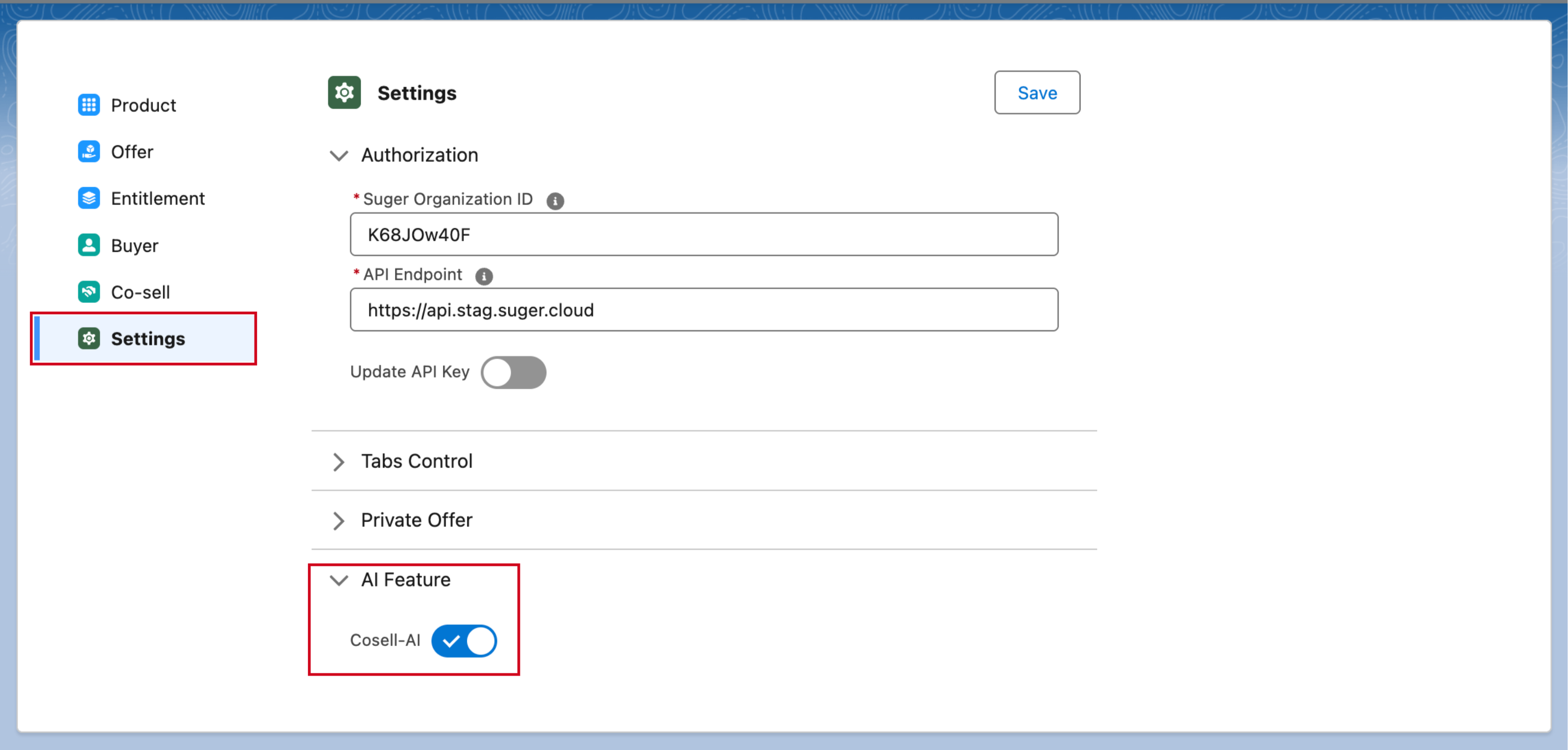 - Salesforce Settings: Navigate to your Suger Salesforce Settings and ensure the Cosell-AI toggle under AI Feature is activated.