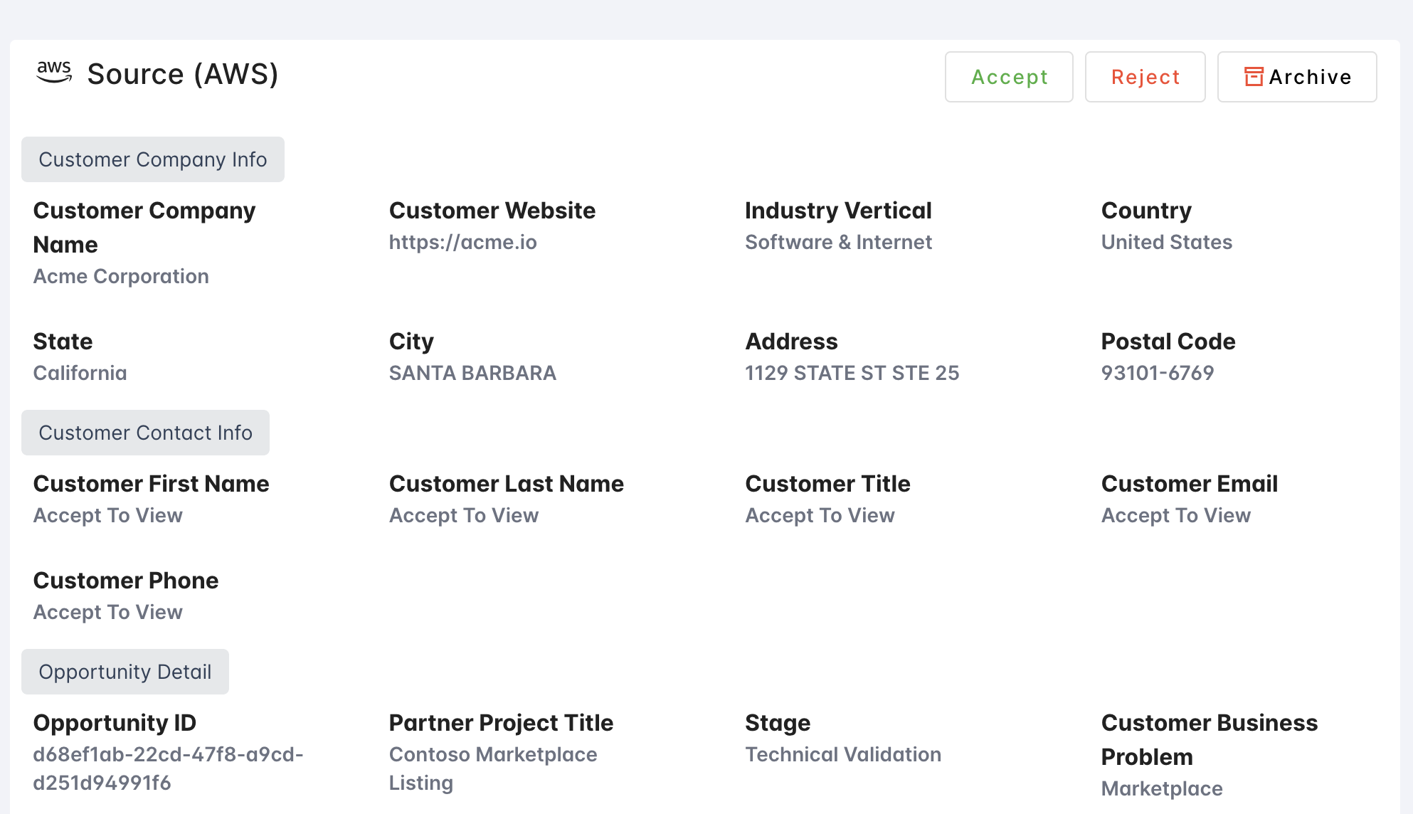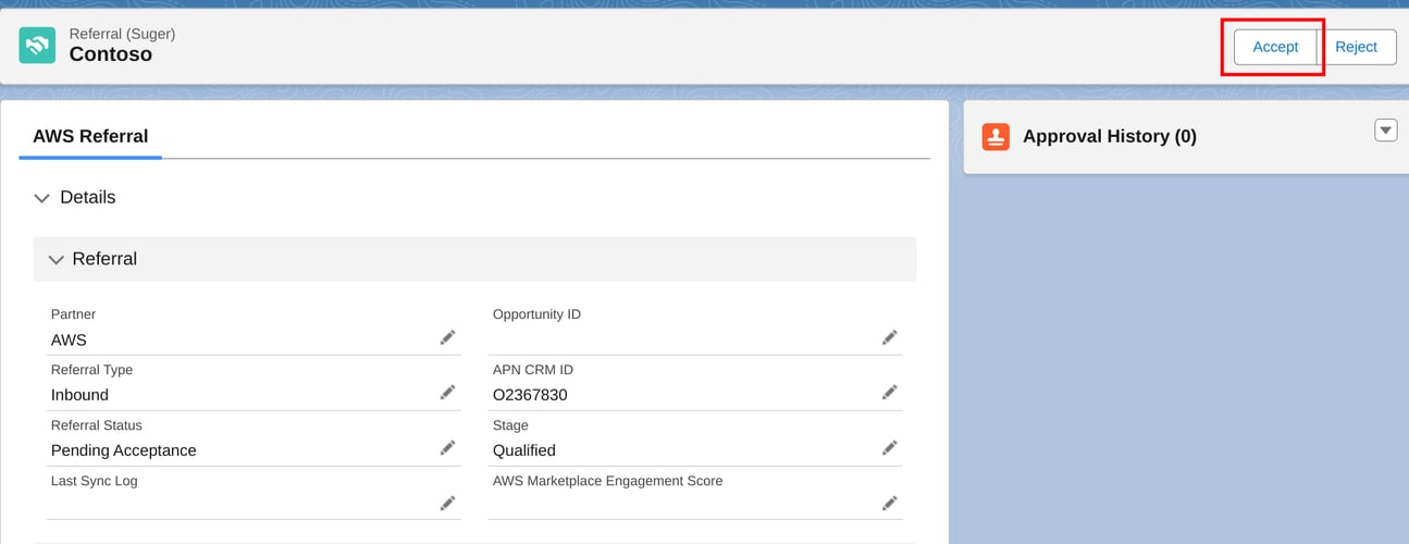 Suger will create the opportunity in your CRM, and notify the cloud partner that we would like to accept this referral, with the associated CRM record ID.