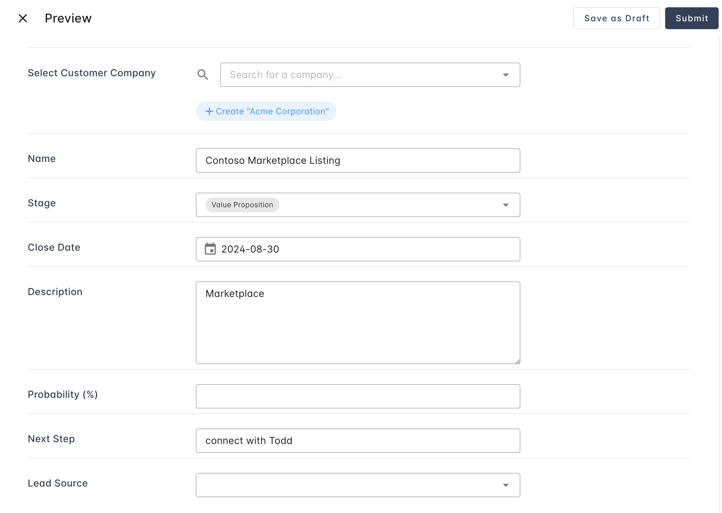 Populate the opportunity detail. Most fields will be auto-populated if you have configured the field mappings & templates.