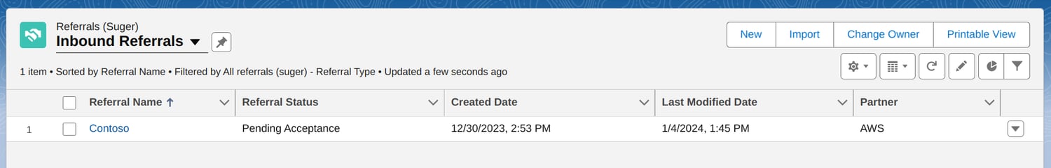 In Suger Console, the Co-sell Inbox tab is the place to check all inbound referrals from cloud partners.