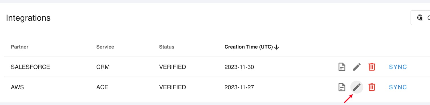 If you need to delete the AWS Partner Network integration, you can do so like any other integration. Once the deletion is triggered, all integration information, including the access token, will be immediately and permanently deleted from Suger.