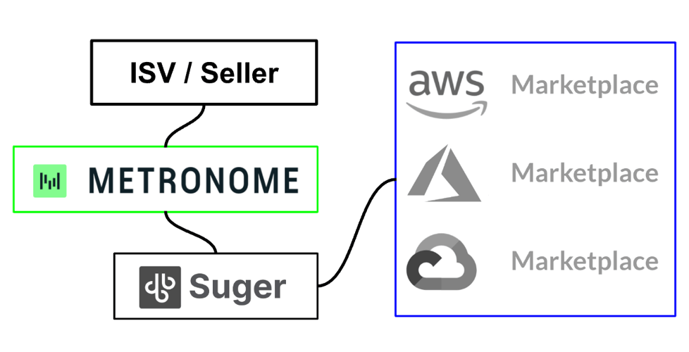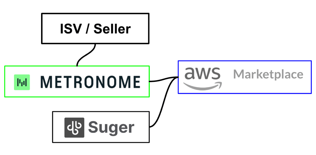Description | Metronome offers officially integrating with AWS Marketplace and sends usage metering to AWS Marketplace metering service directly. Here is the official guidance. | Suger provides pre-built integration to connect Metronome & cloud marketplaces. Hourly cron jobs automatically fetch aggregated usage events and report them to cloud marketplace in the right formats. |