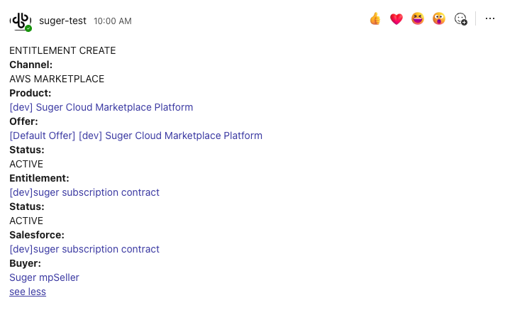 Here is an example of notification you will receive in your Microsoft Teams channel when a new entitlement is created:
