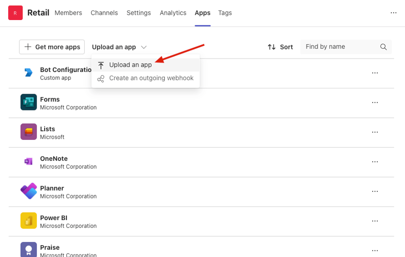 - Click button Upload an app, then choose the