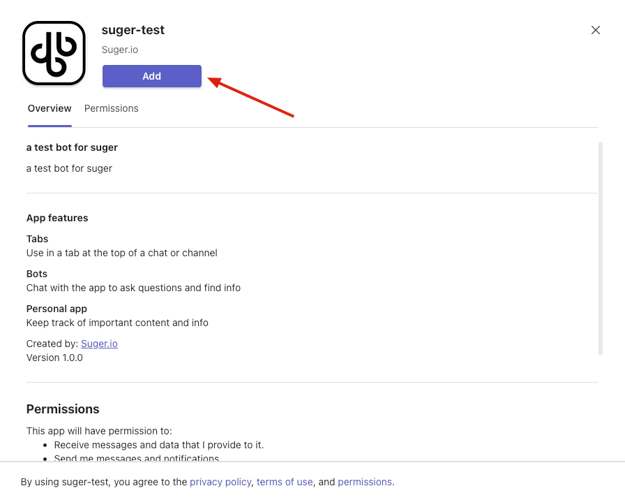 button to download the Suger Microsoft Teams app package